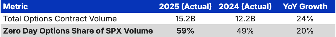 Retail doesn’t express their appetite for gambling by buying stocks; they do by buying zero-day options, which grew to a staggering 59% of total options volume in 2025. Perpetual futures take that impulse further, offering users 20-100x leverage on tap with no expiration date. Perps were originally designed by Nobel Prize-winning economist Robert Shiller to help ordinary households hedge against long-term economic risks like housing prices or GDP growth. Little did he know how degenerately they would be used a few decades later.