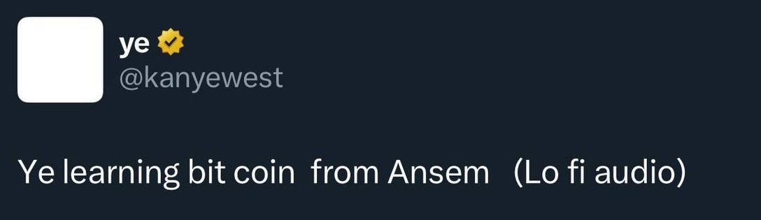 The most prominent traders in crypto today are Ansem and Cobie. Ansem shot into Crypto Twitter fame by buying Solana around its $10 lows and publicly broadcasting his bet. He became the de-facto leader for the large retail community that Solana onboarded through memecoins in 2024. His peak celebrity trader status came as actual celebrities like Iggy Azalea and Kanye West learned about crypto and launched memecoins. High profile people came directly to Ansem for advisory and support. Traditionally, celebrities built cultural capital through their work and cashed that in for money later. The trading class inverts this by becoming rich in public, wining cultural status as a result.